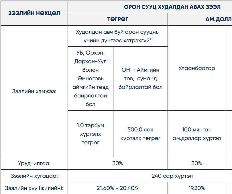Төрийн Банк - Орон сууцны зээл - Орон сууц худалдан авах зээл