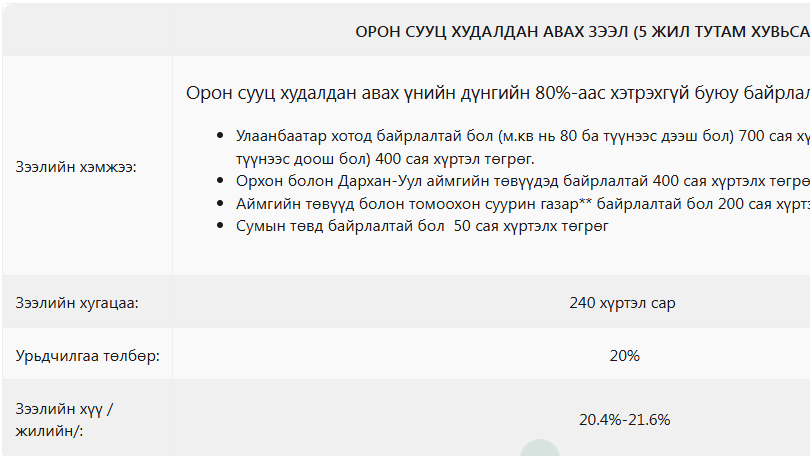 - Зээл хүсэгч нь 18 нас хүрсэн Монгол улсын иргэн байх