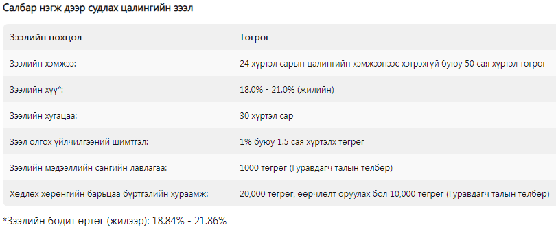 - Банктай цалингийн зээлээр хамтран ажиллах гэрээтэй байх
