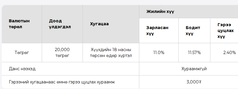 3 сарын хугацаатай хадгаламж