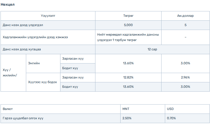 Доллар, юанийн хадгаламжийн хүү тооцох