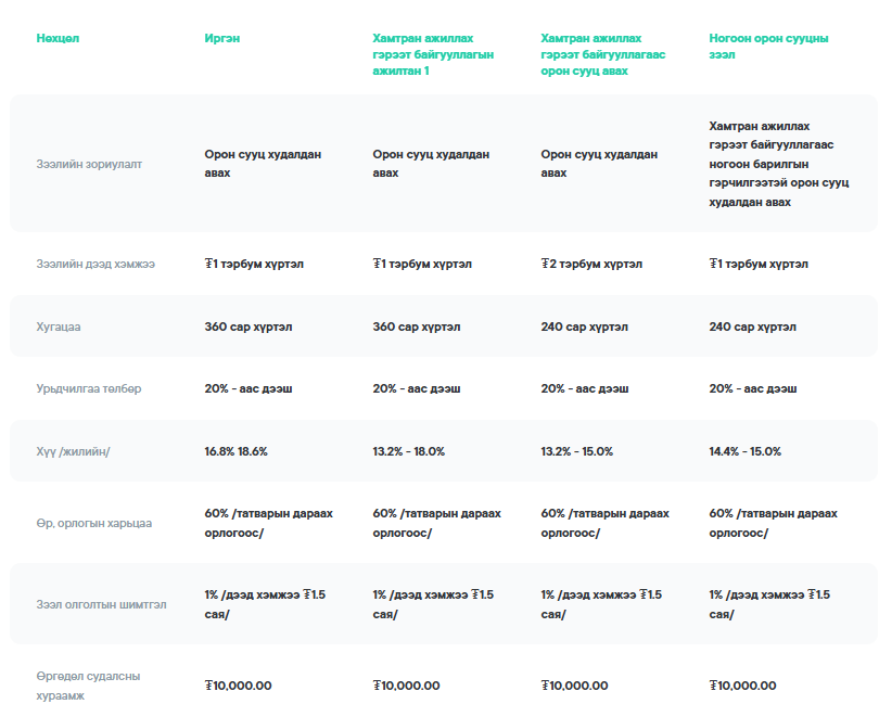 Хамгийн бага хүүтэй зээлүүд
